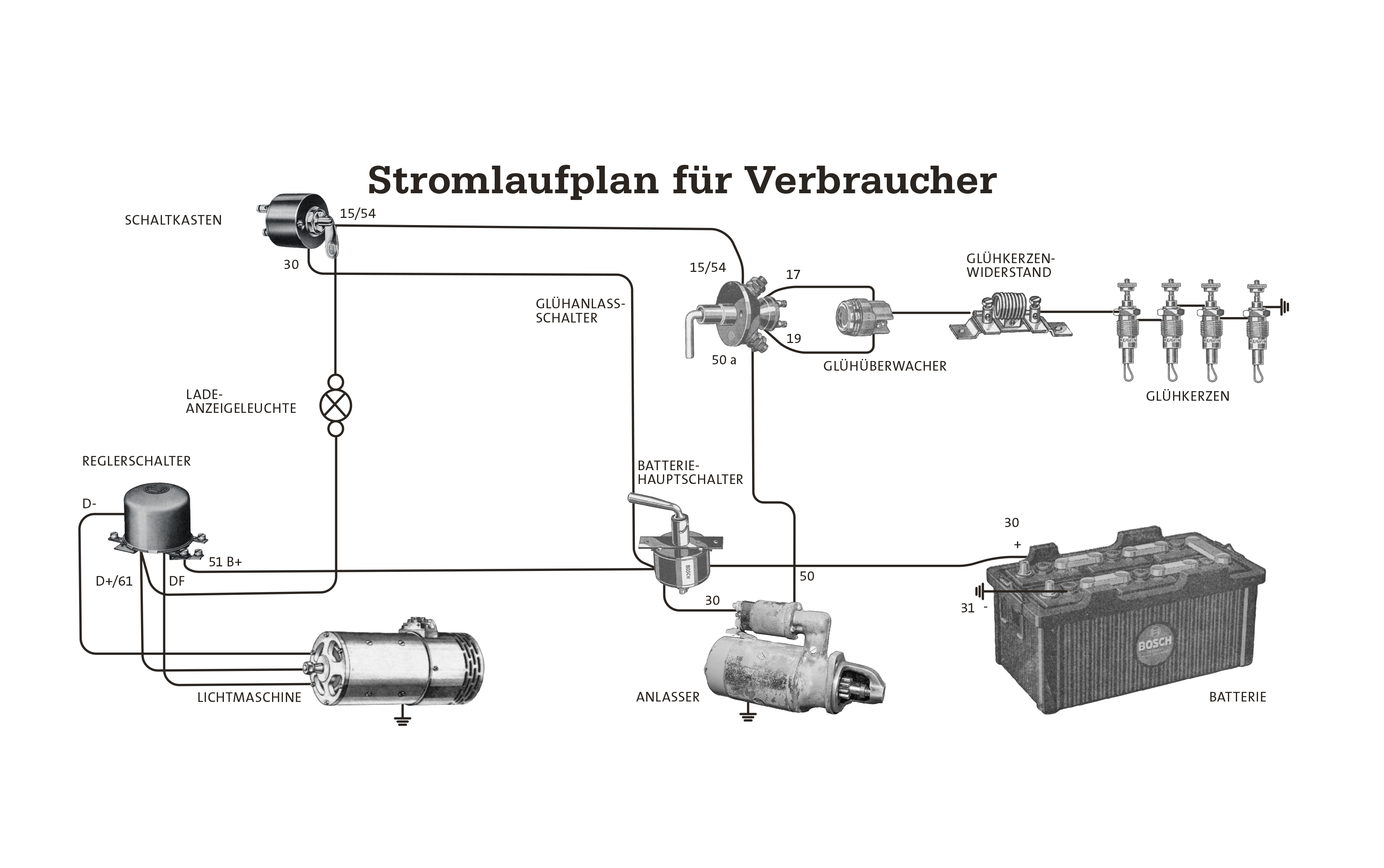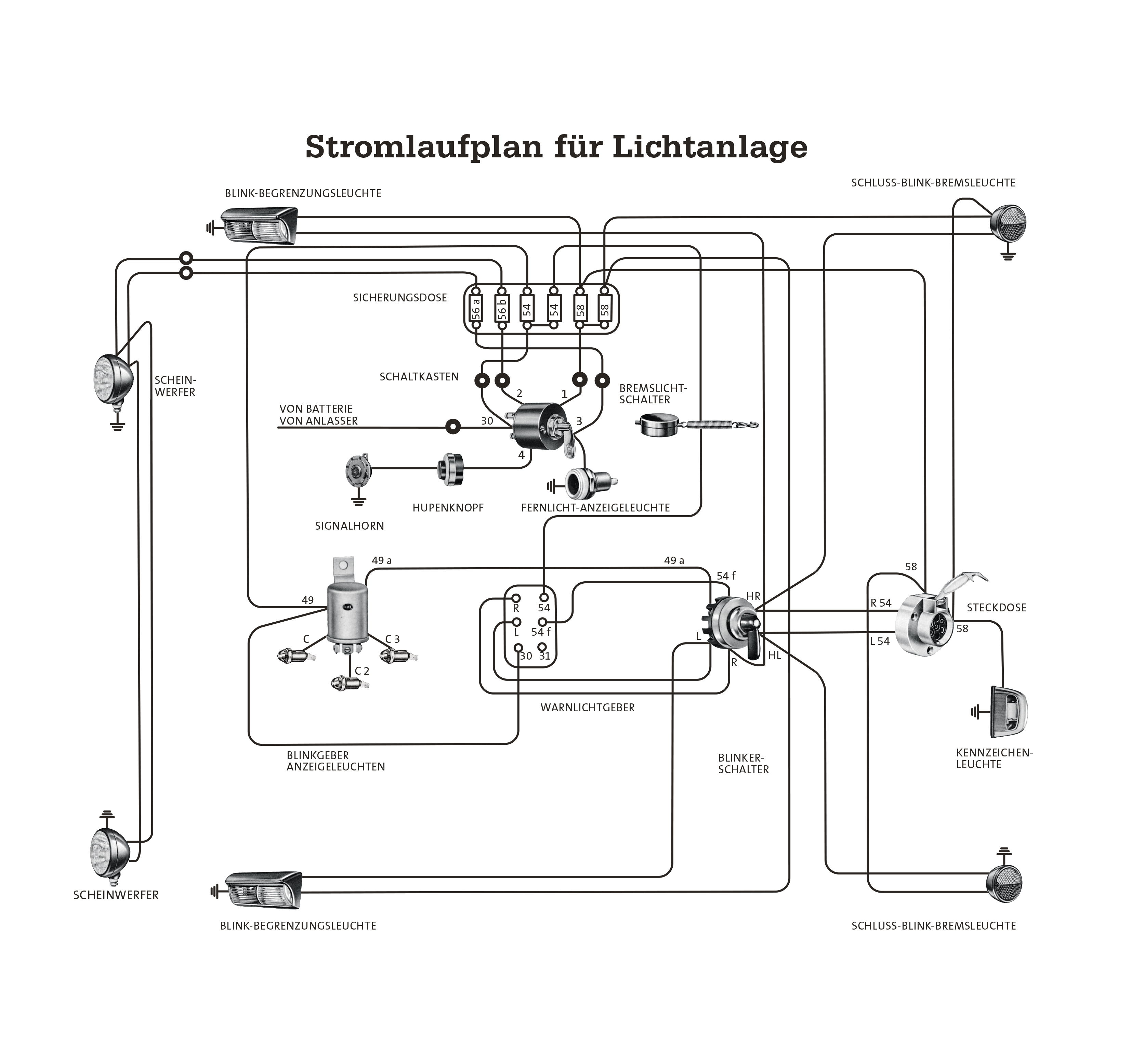 Praktischer und übersichtlicher Traktoren-Stromlaufplan als Poster für Lichtanlage und Verbraucher
